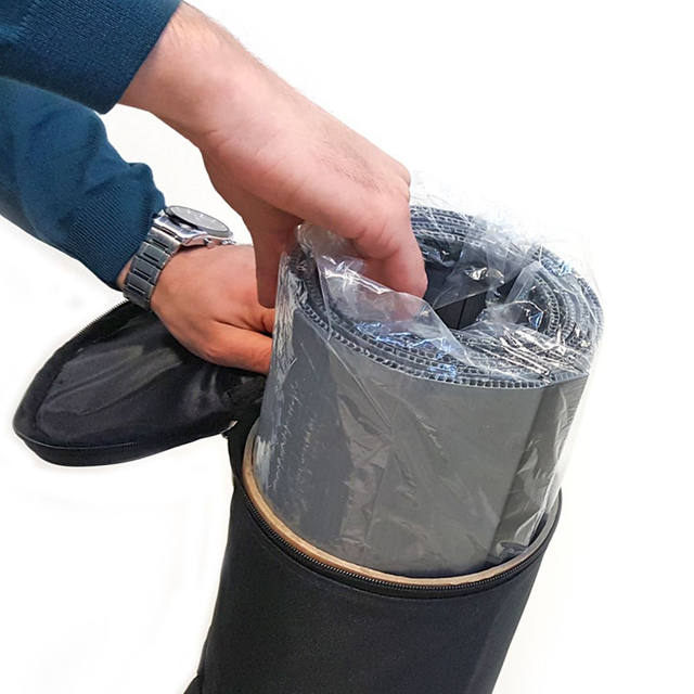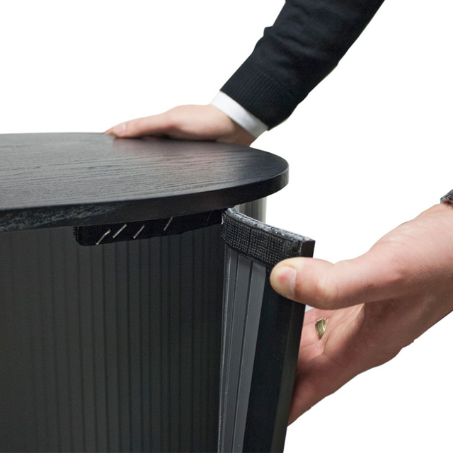 Balcão circular portátil para feiras e eventos com 130x92cm com impressão incluída.